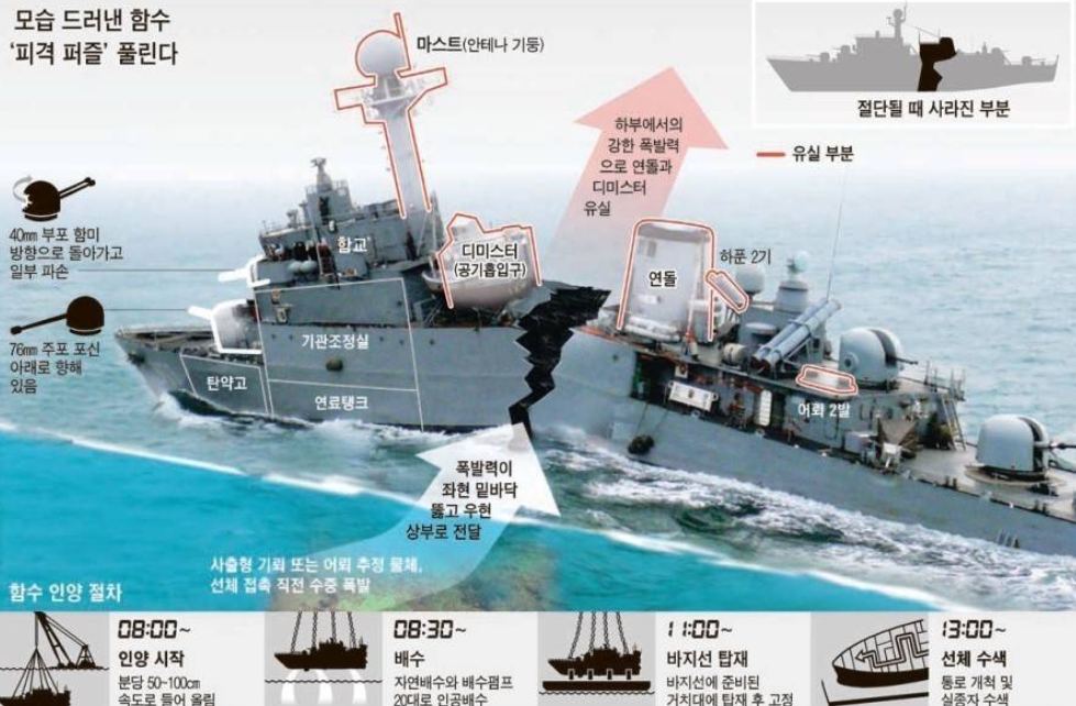 - 2010년 3월 26일, 백령도 인근 해상에서 대한민국 해군 초계함 천안함이 북한의 어뢰 공격으로 침몰하여 46명의 해군 장병이 희생된 사건입니다.