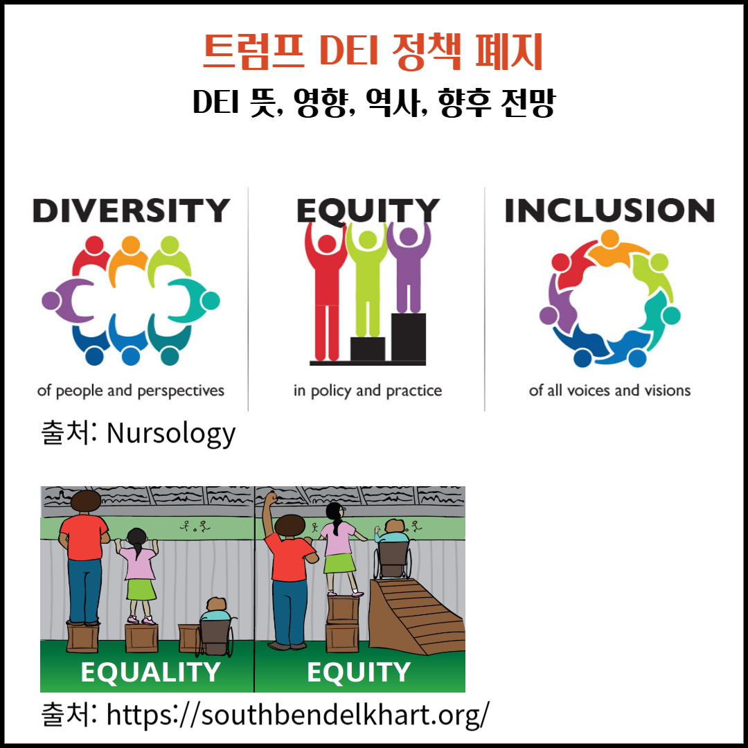 DEI 정책은 단순한 평등(equal)보다 형평성(equity)을 강조하며, 사회적 소수자에게 실질적인 기회를 보장하는 데 초점을 둡니다.