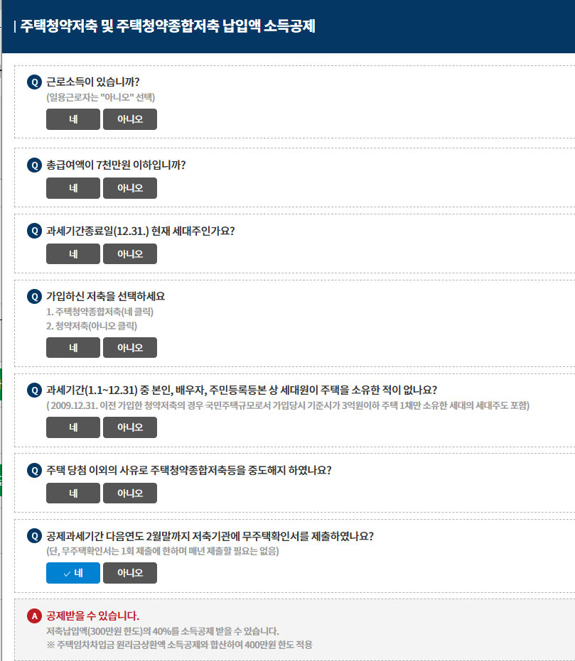 - 연간 주택청약저축 납입액: 300만 원
