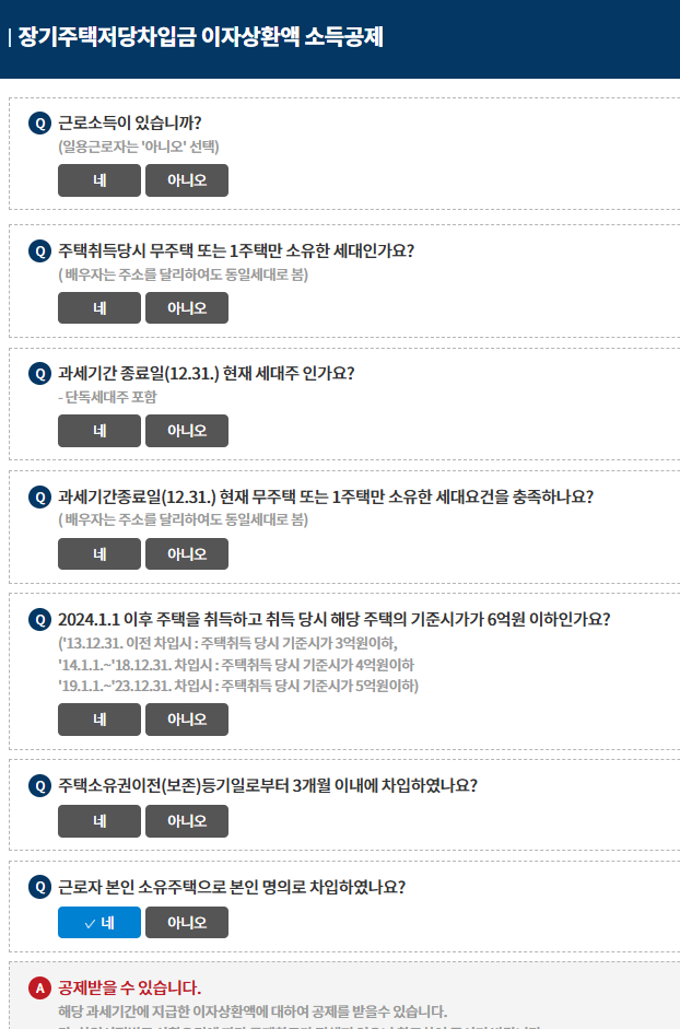 - 주택 기준 시가(6억 원)를 초과하므로 공제 대상에서 제외.