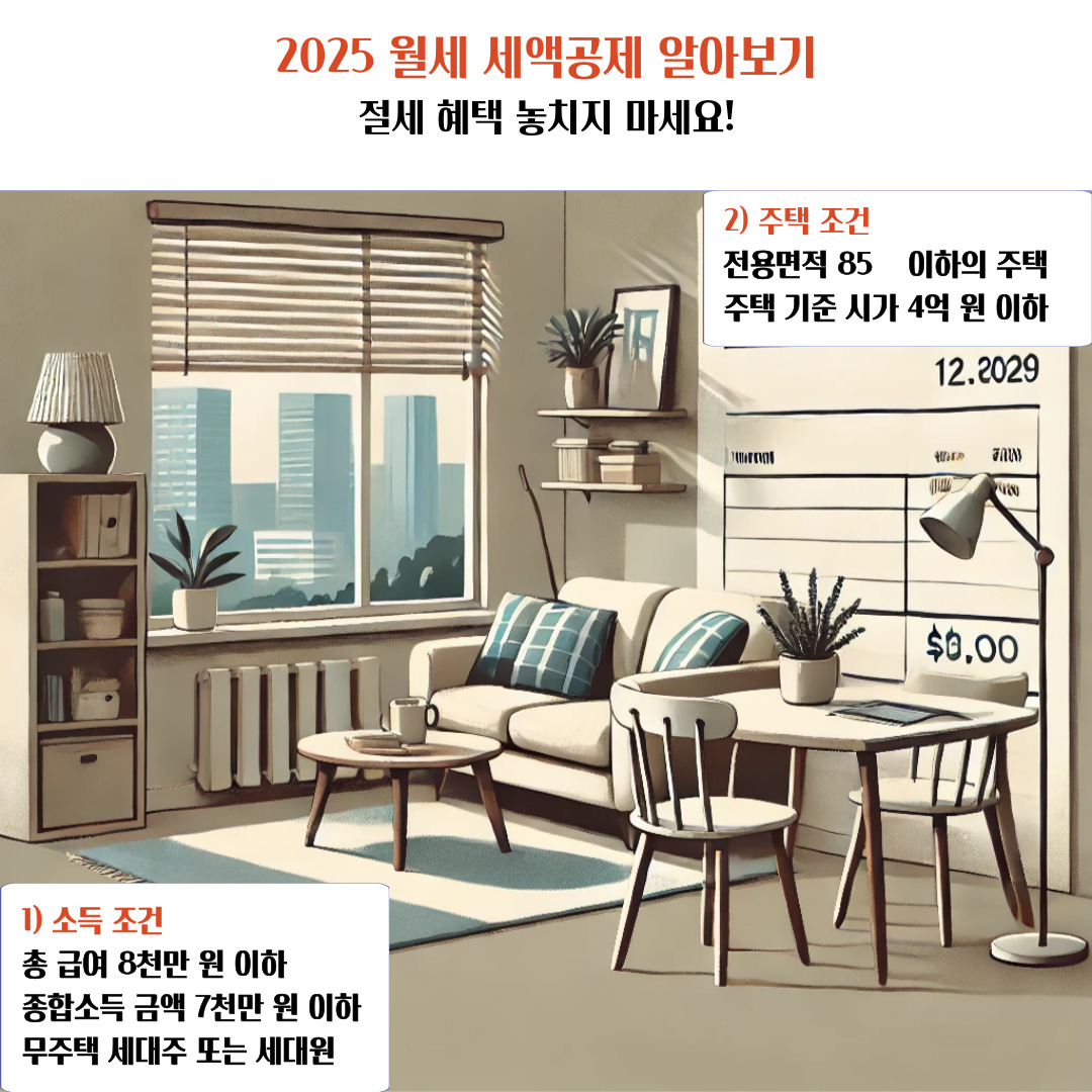 | 2025 월세 세액공제 알아보기: 절세 혜택 놓치지 마세요! (2) | 2025.01.04 |